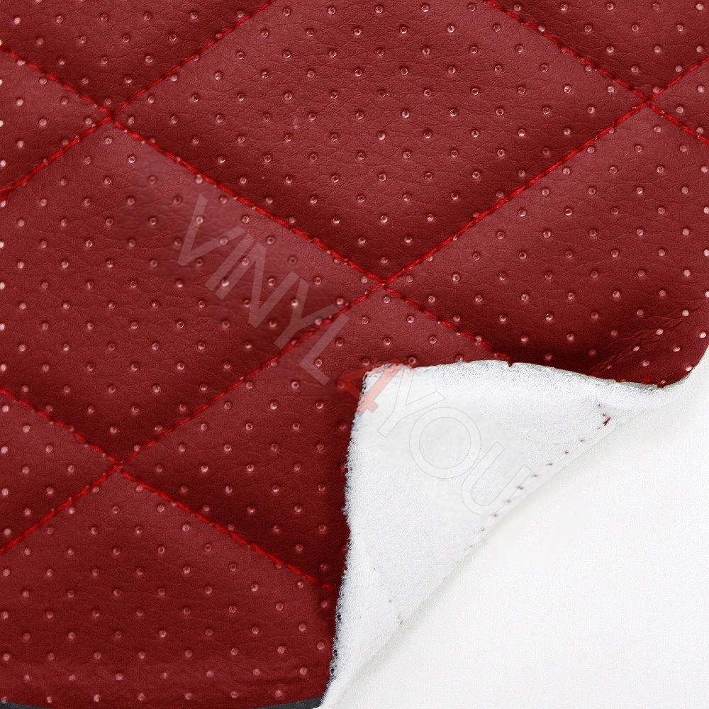Экокожа стеганая перфорированная Ромб Красная с Красной строчкой